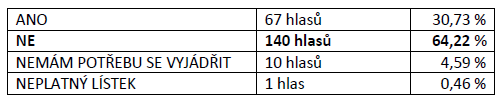 NE 140 hlasů 64,22 %